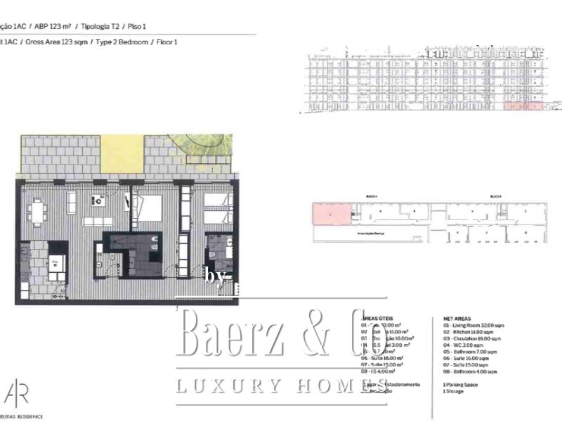 Veilig wonen is gegarandeerd binnen een afgesloten gemeenschap met 24/7 beveiliging, een gereserveerde parkeerplaats en privéberging. De circulatie is ruim opgezet, waarbij 16 m² is gereserveerd voor gangen en doorgangen die zowel openheid als discretie behouden. Gelegen op korte afstand van het Franse lyceum, Marquês de Pombal, Avenida da Liberdade en Rato, combineert deze locatie historische allure met kosmopolitische voorzieningen. Bezichtigingen zijn per direct mogelijk, oplevering vanaf april 2026. Dit appartement in Amoreiras biedt een zeldzame balans tussen licht, privacy en stedelijke bereikbaarheid in Lissabons meest gewilde wijk.