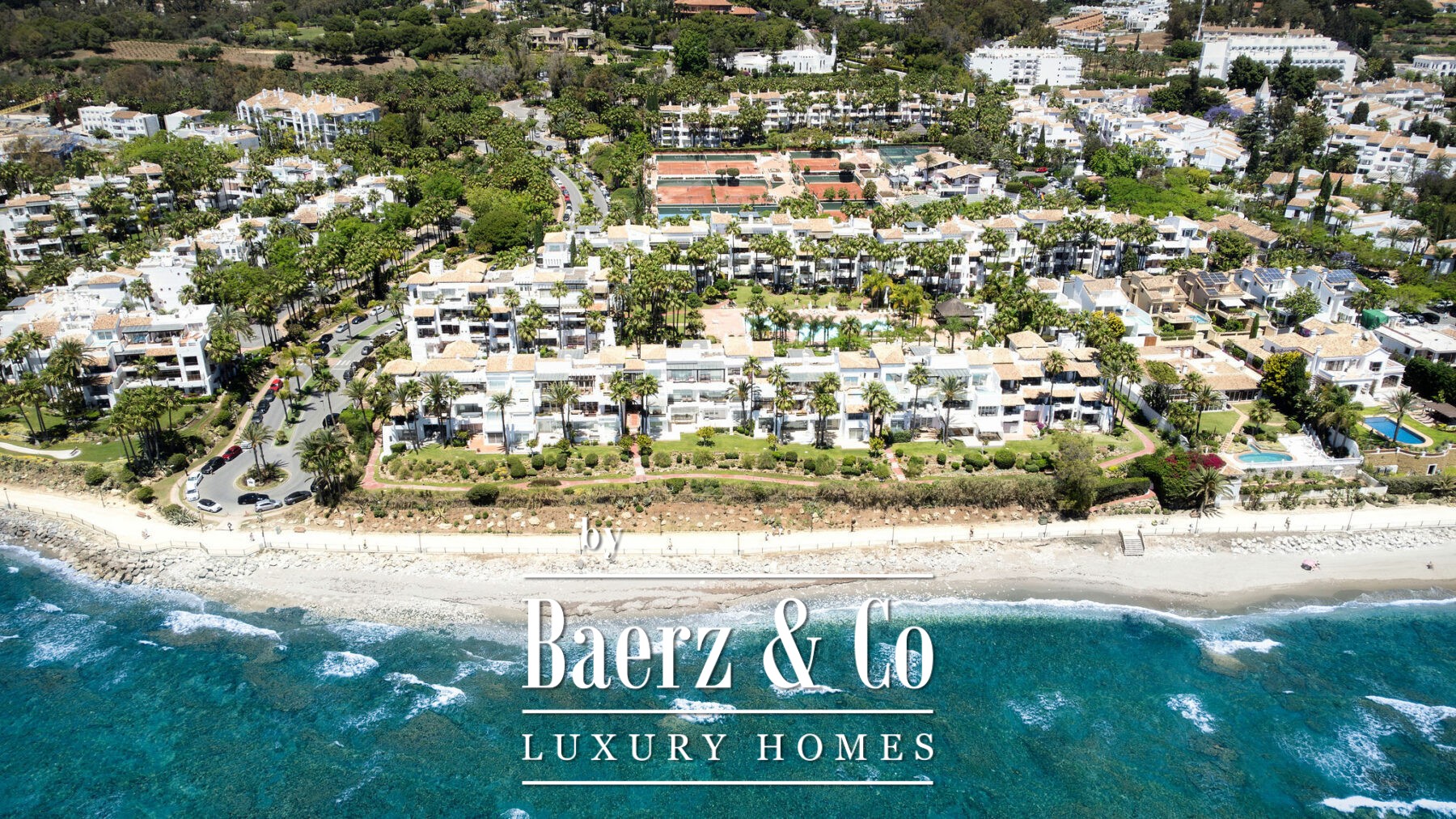Welcome to your luxurious frontline beach apartment in Puente Romano, Marbella, nestled within the prestigious and secure urbanization of Jardín Persa.