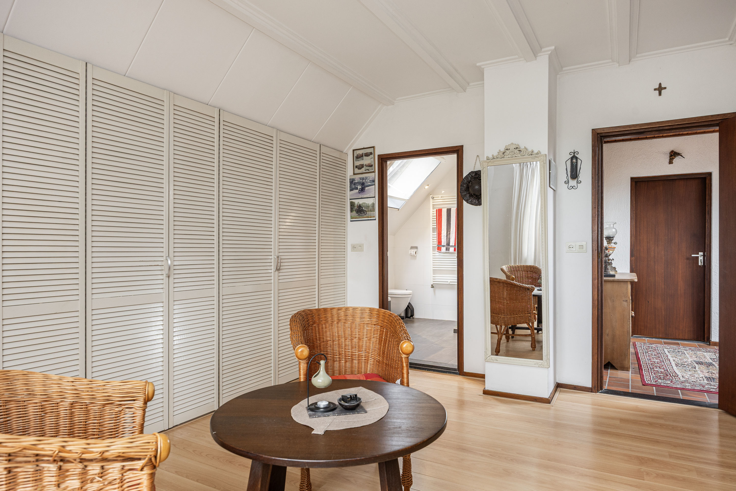 De overloop geeft toegang tot een ruimte met vaste kastenwand. De royale hoofdslaapkamer beschikt over een vaste kastenwand en een eigen badkamer met ligbad, douche, dubbele wastafel en toilet. Daarnaast zijn er nog drie ruime slaapkamers, ideaal voor gezin, gasten of hobby.