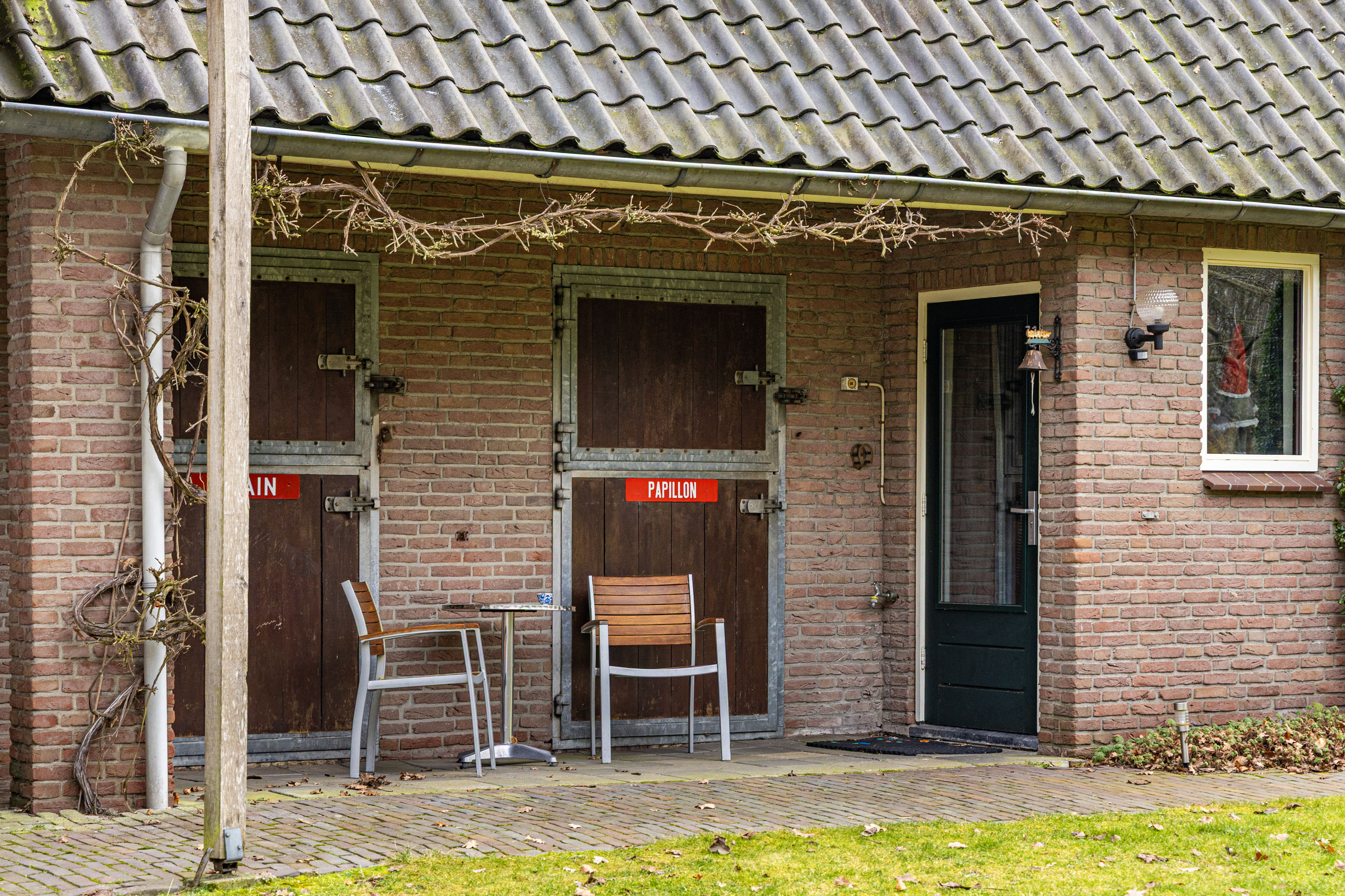 Aan de B&B zit een aanbouw waarin twee paardenstallen zijn gesitueerd en een ruimte voor het stallen van een camper.
