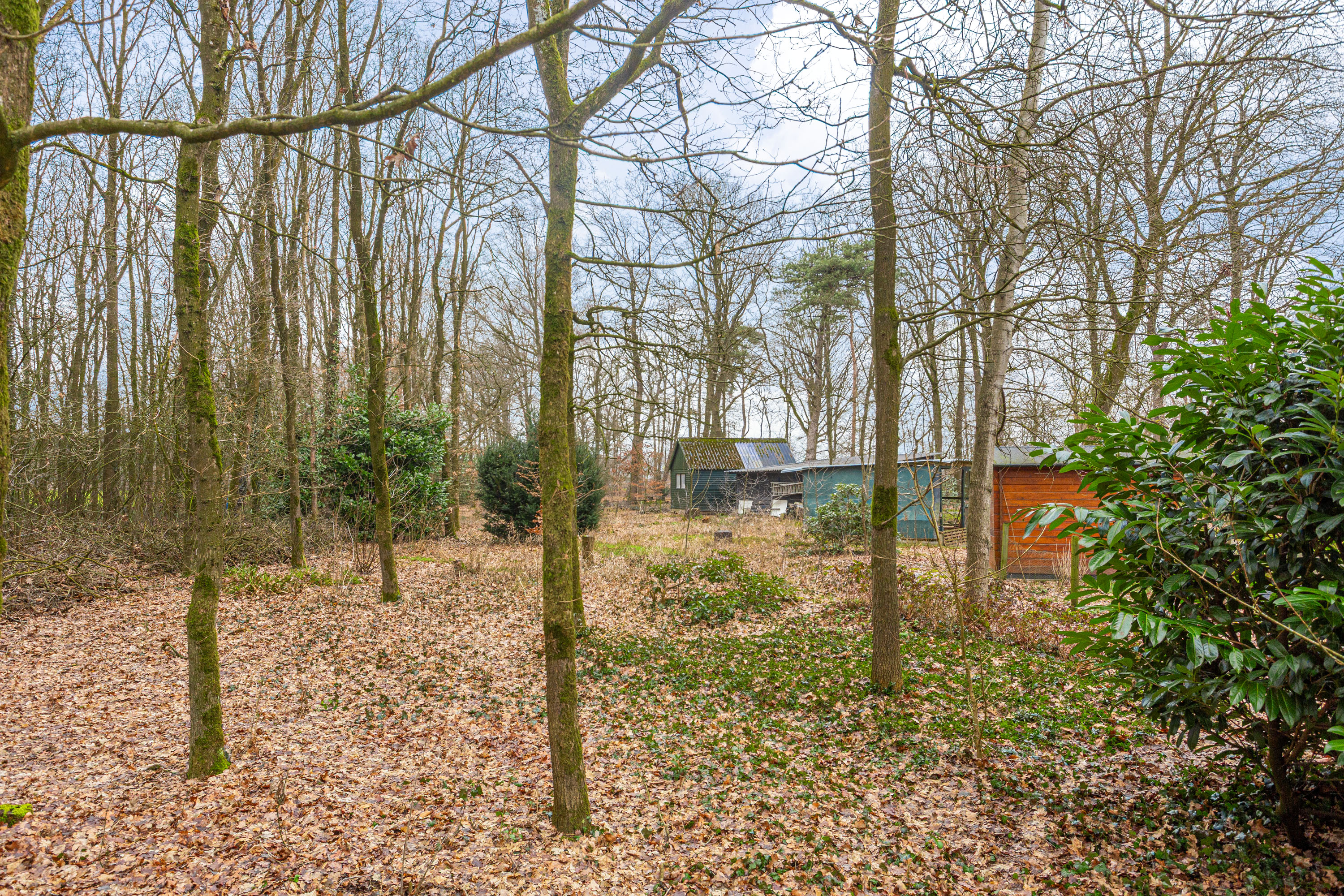 De ruimte rondom het woonhuis is ruim en groen met veel privacy. Het perceel wordt omringd door volwassen bomen, de tuin is met zorg aangelegd met veel groene en bloeiende struiken en planten. De grote gazons en diverse terrassen bieden op elk moment van de dag een fijne plek in de zon of juist in de schaduw. De ruime oprit biedt ruim voldoende parkeergelegenheid op eigen terrein.