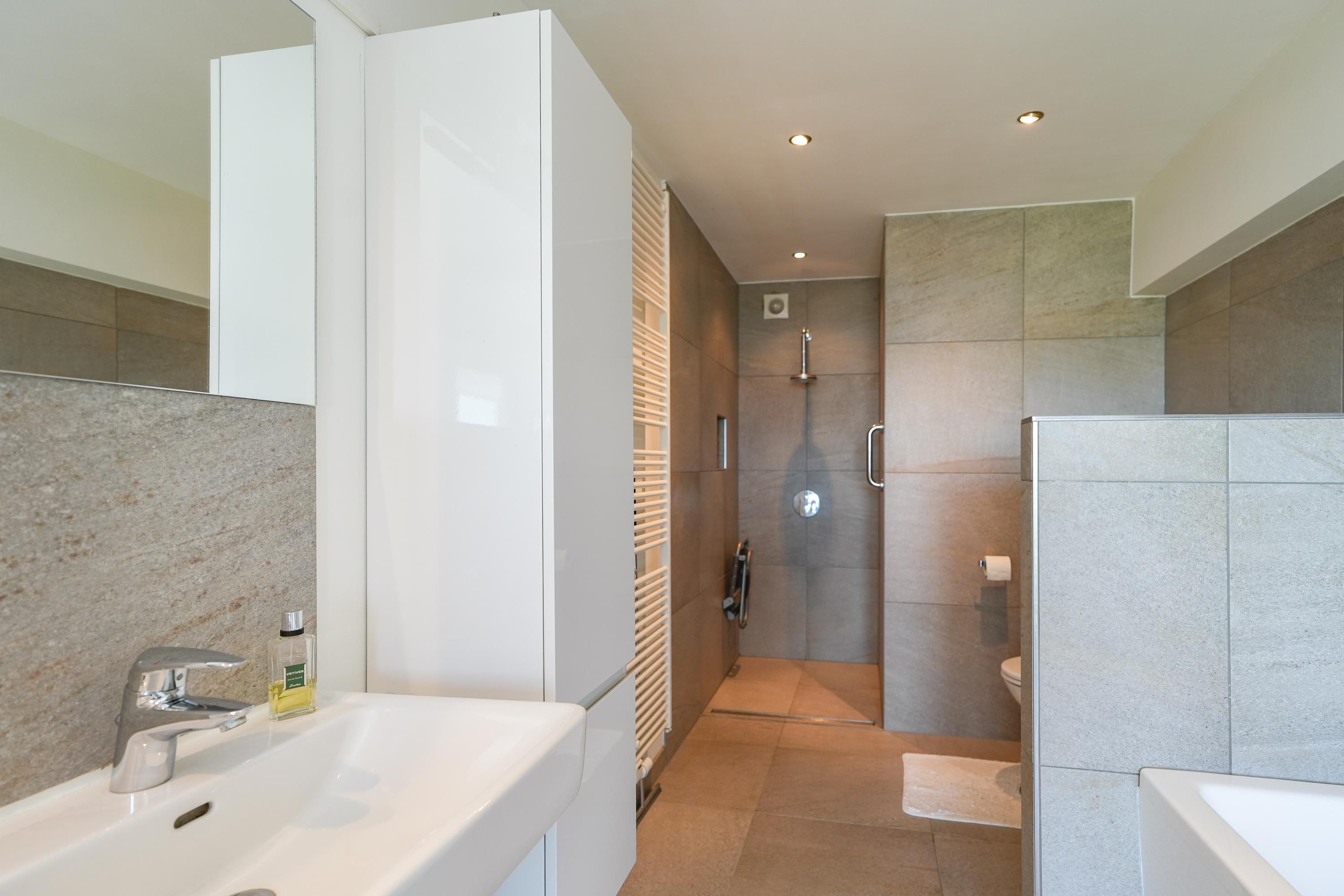 De tweede badkamer, toegankelijk vanuit de hal, is voorzien van een douche en wastafel. Praktisch en comfortabel als gastenbadkamer. De overige twee slaapkamers zijn eveneens ruim en genieten, net als de rest van de woning, van veel daglicht en een vrij uitzicht. Één van deze kamers beschikt bovendien over een eigen balkon op het westen – perfect om te genieten van de middag- en avondzon.