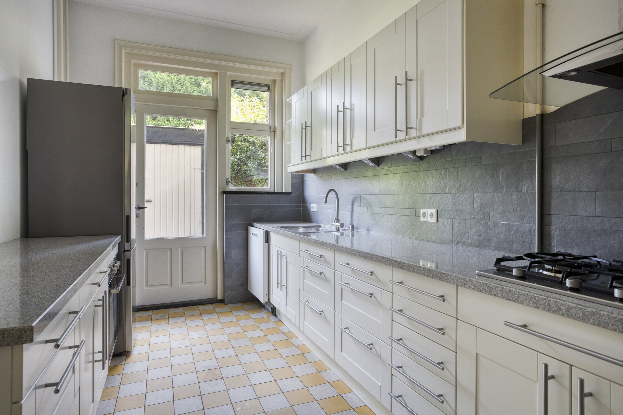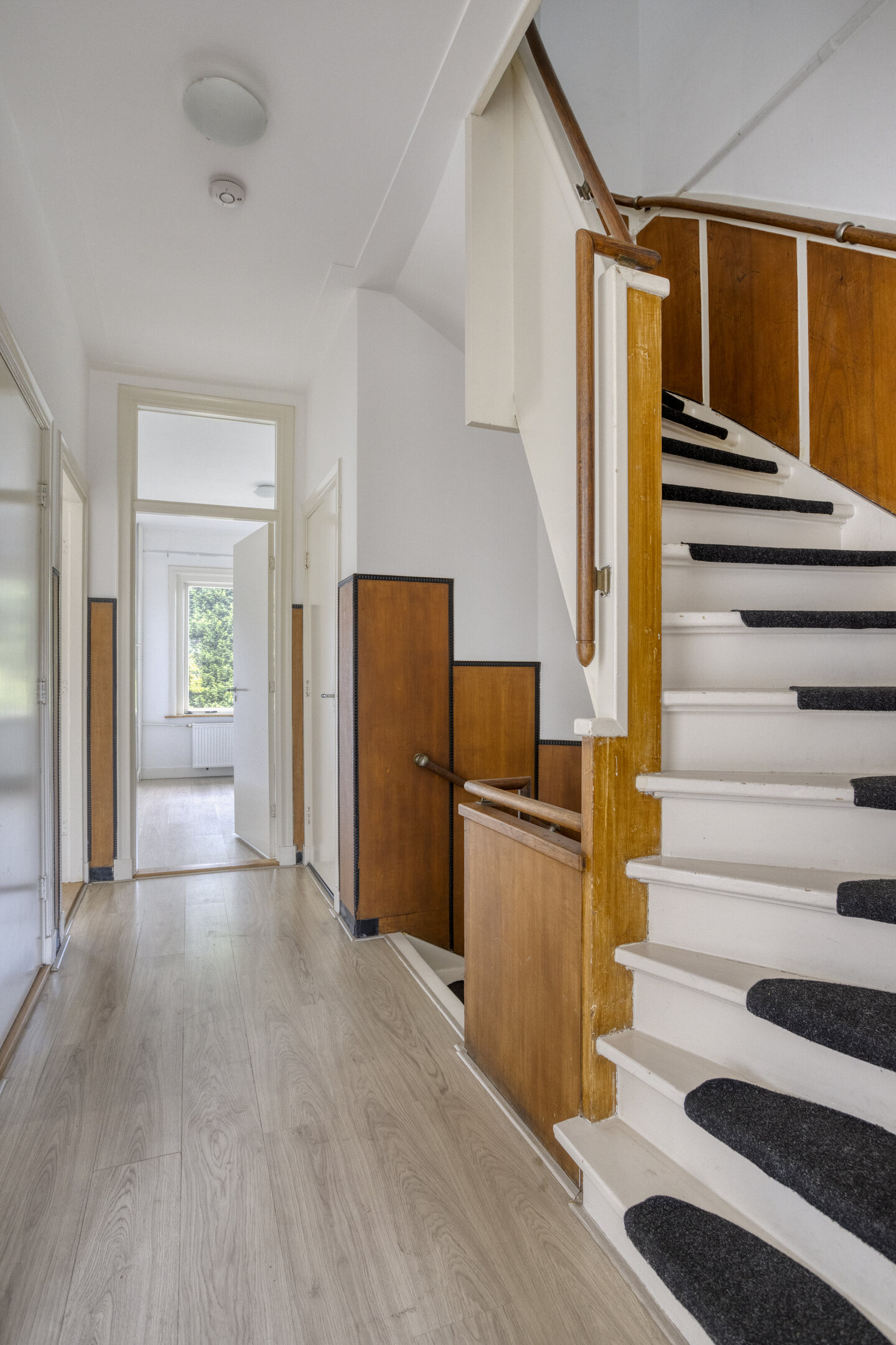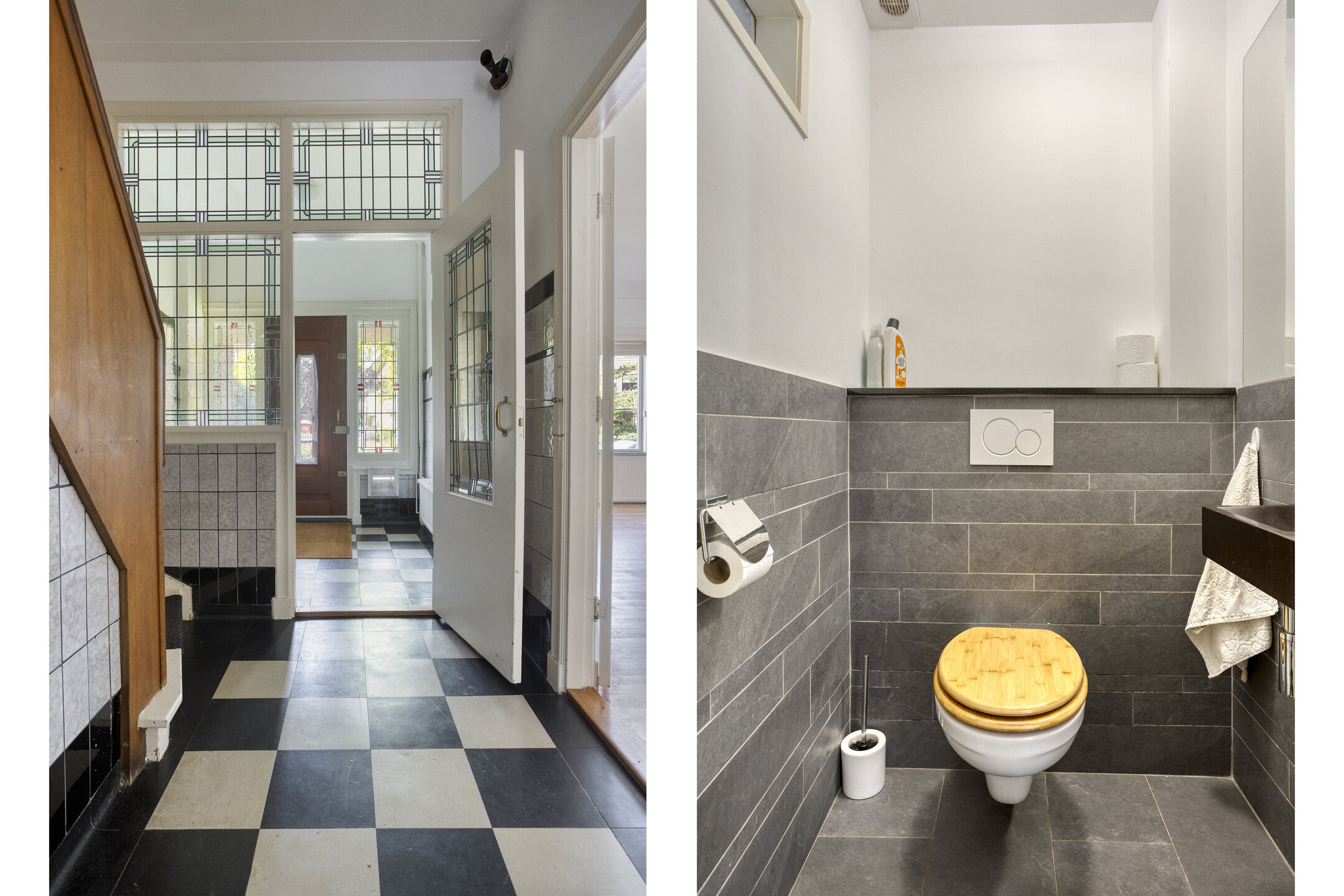 Veel authentieke details zijn bewaard gebleven en geven het huis zijn karakteristieke sfeer: hoge plafonds, glas-in-loodramen, houten vloeren en klassieke lambriseringen. Aan de voorzijde ligt een ruime voortuin, terwijl de diepe, zonnige achtertuin volop privacy en mogelijkheden biedt – ideaal voor een groot gezin en heerlijk buitenleven.
