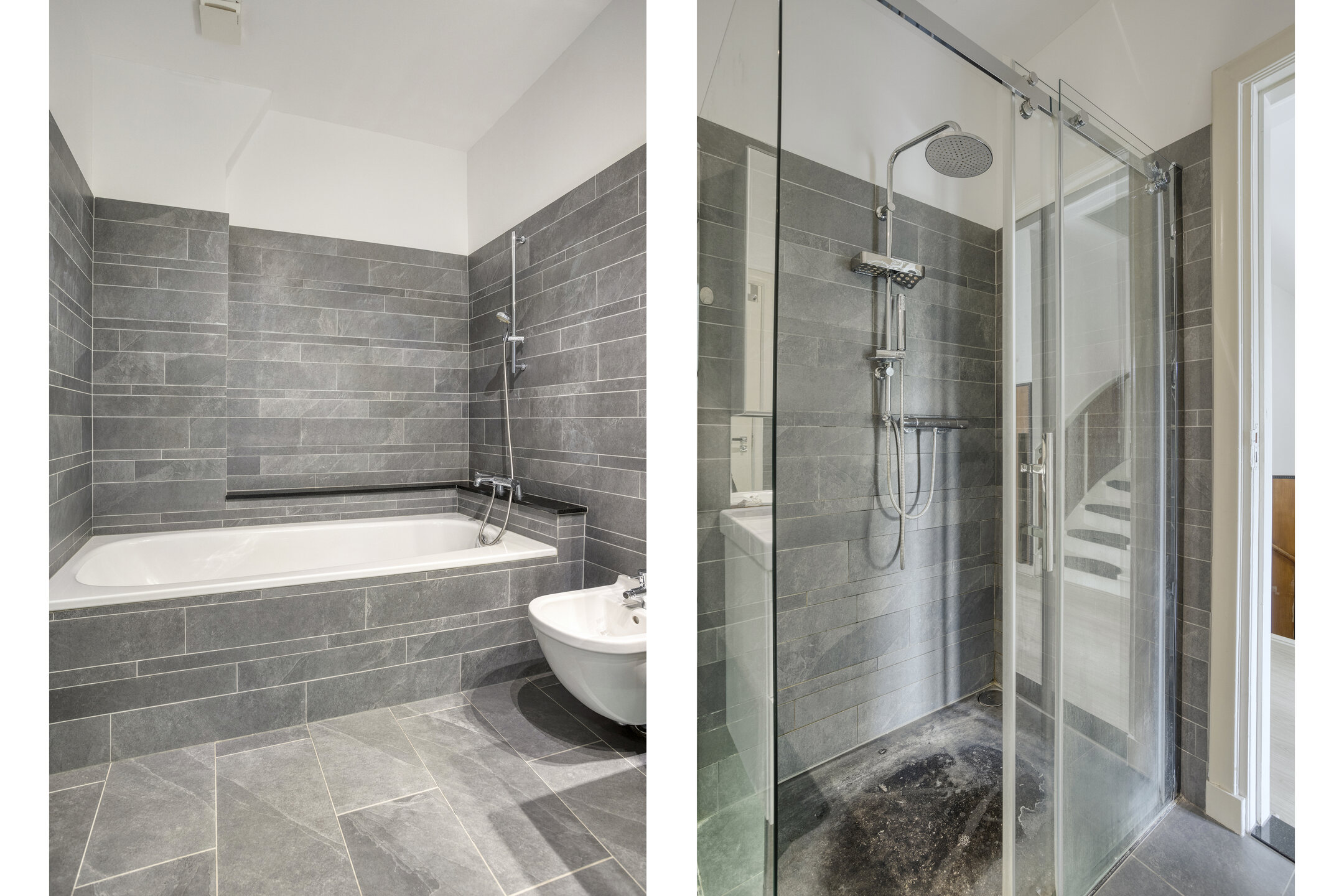 Karakteristiek trappenhuis met originele lambriseringen. Aan de voorzijde een royale kamer met zijkamer en balkon. Aan de achterzijde een ruime slaapkamer met balkon, een vierde kamer (nu in gebruik als wasruimte) en een centraal geplaatste badkamer met ligbad, inloopdouche, dubbele wastafel en bidet. Separaat toilet op de overloop.
