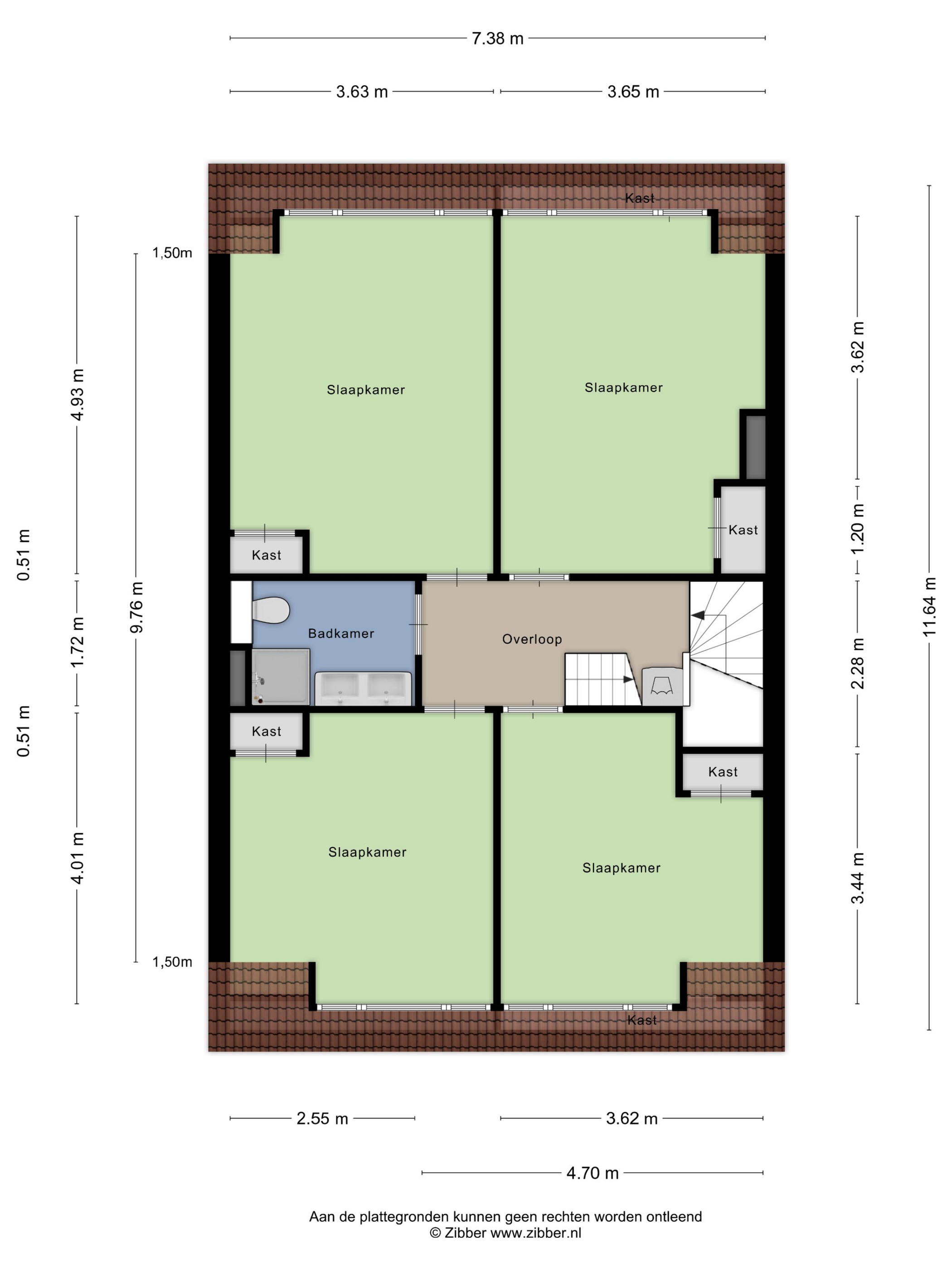 Overloop met toegang tot vier ruime slaapkamers, voorzien van dakkapellen. Tweede badkamer met douche, toilet en dubbele wastafel. Extra bergruimte achter de schuine wanden.