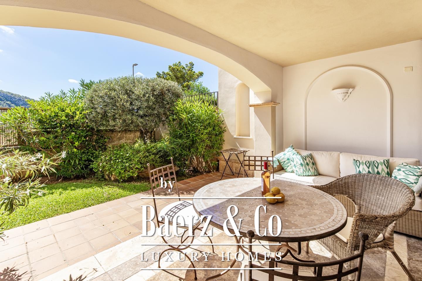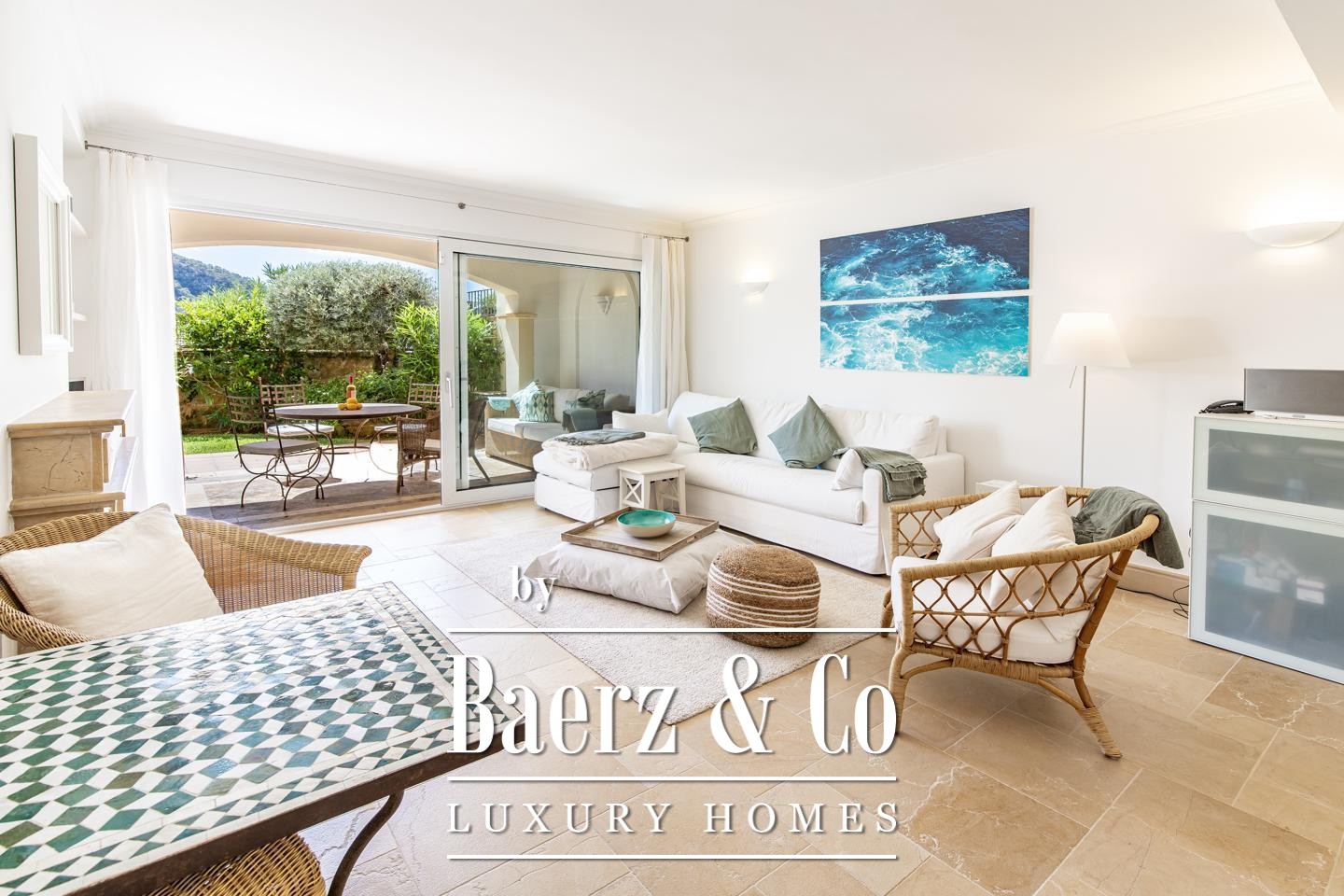 Appartement Port d'Andratx biedt een verfijnde samensmelting van architectuur en het mediterrane licht, gelegen in een van de meest vooraanstaande gemeenschappen van het gebied. Op slechts enkele minuten van Cala Llamp, verenigt deze woning comfort en rust met een ingetogen gevoel van luxe. Het appartement beslaat circa 95 m² en beschikt over één slaapkamer en een en-suite badkamer met zowel een bad als een douche. Marmeren vloeren, vloerverwarming en een Poggenpohl-keuken uitgerust met Küppersbusch-apparatuur weerspiegelen een doordachte benadering van design. Zowel de woonruimte als de hoofdslaapkamer bieden toegang tot een terras van 33 m², dat doorloopt in een privé tuin—een serene plek om te genieten van het aangename Mallorcaanse klimaat.