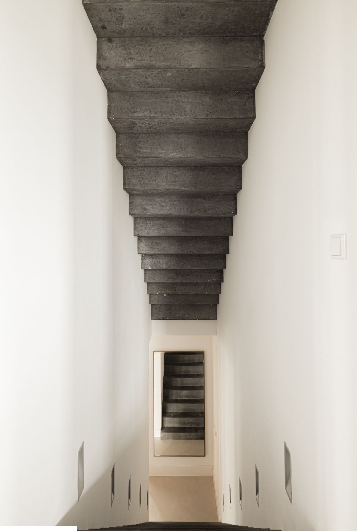 Door de verdiepte binnen patio is er veel natuurlijk licht op deze woonverdieping met hoge plafonds. De vier slaapkamers, hebben ook hier elk een eigen badkamer. Verder tref je hier 2 bergingen, technische ruimte en strijk-/wasruimte. Vanuit de centrale hal met hoge openslaande deuren loop je de privacy biedende patio in. Met een buitentrap loop je zo naar de achtertuin en het zwembad.