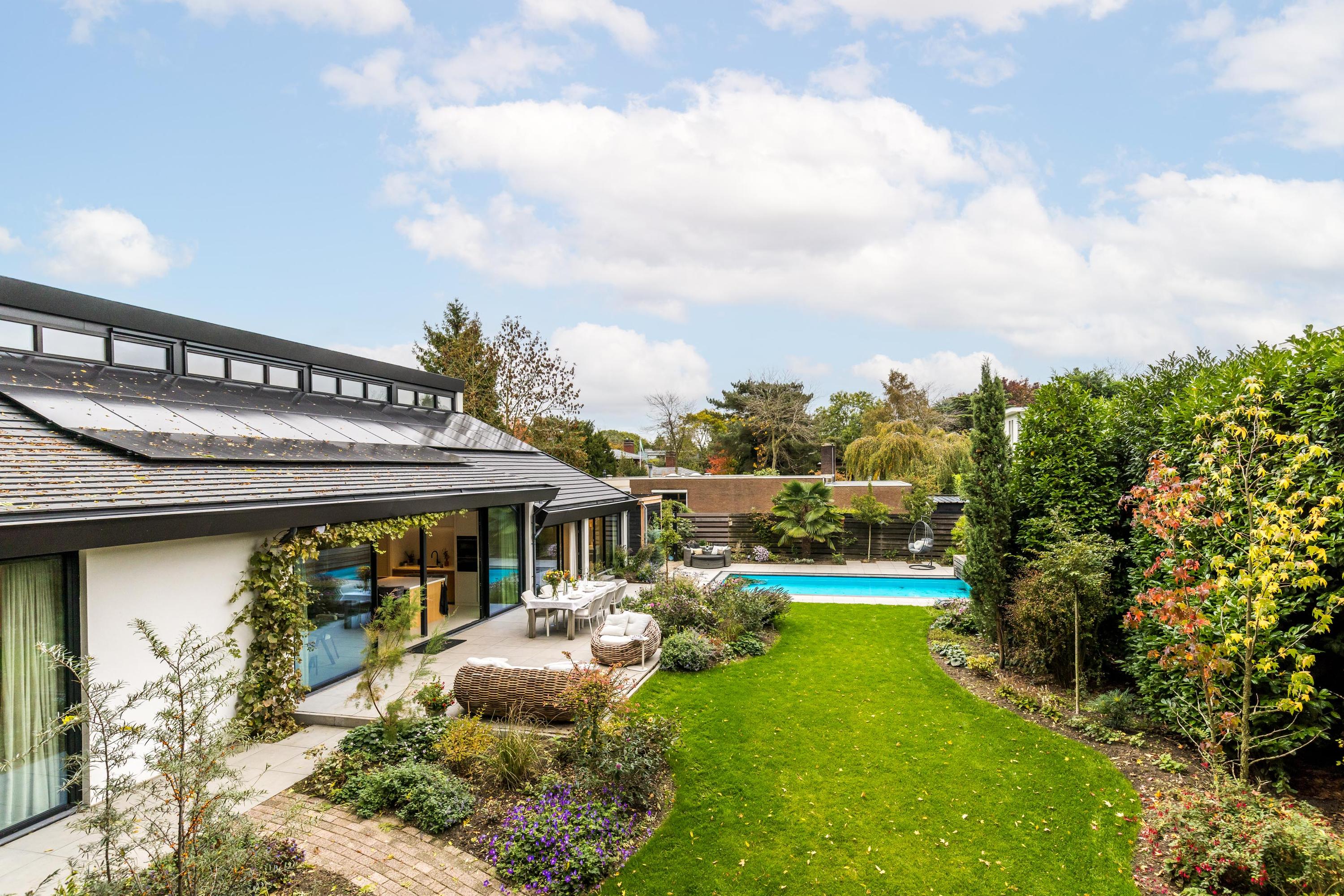 Onder architectuur aangelegd en met opvallend veel privacy, voorzien van parkeergelegenheid op eigen terrein, zwembad, een charmante overkapping die als buitenkeuken kan fungeren, 2 bergingen en een overkapping voor fietsen.