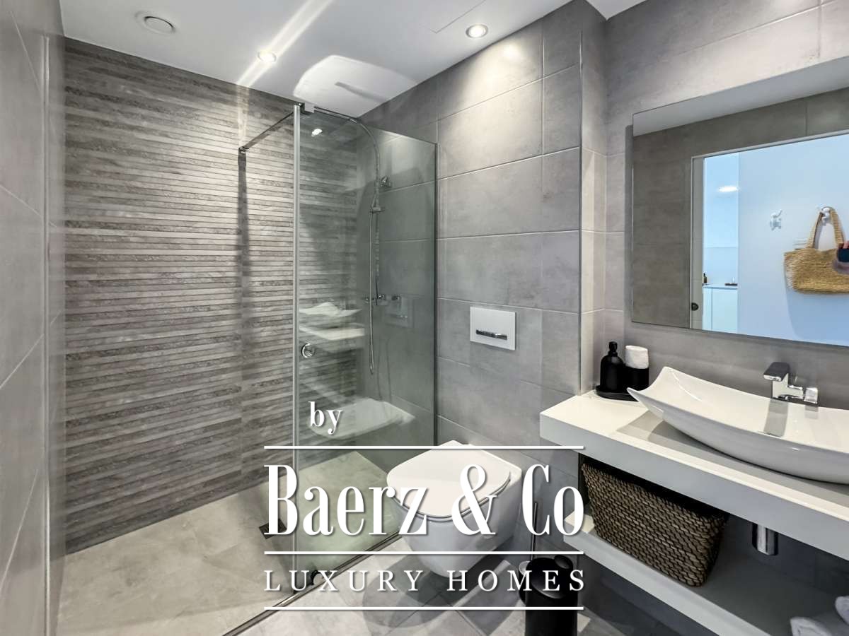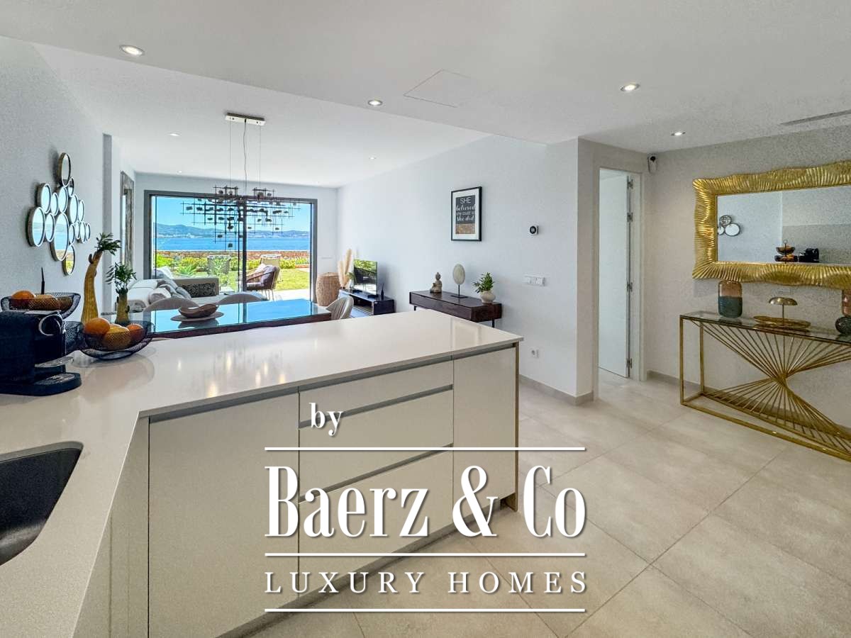 Het appartement beschikt over ongeveer 80 m² woonruimte, met twee slaapkamers en twee badkamers, ideaal voor koppels, gezinnen of gasten. De open woon- en eetruimte loopt naadloos over in het terras en de privé-tuin en biedt direct zeezicht. Het appartement wordt volledig gemeubileerd verkocht en is direct te betrekken. Een parkeerplaats in de ondergrondse garage en een berging maken het compleet.De buitenruimte en afsluiting