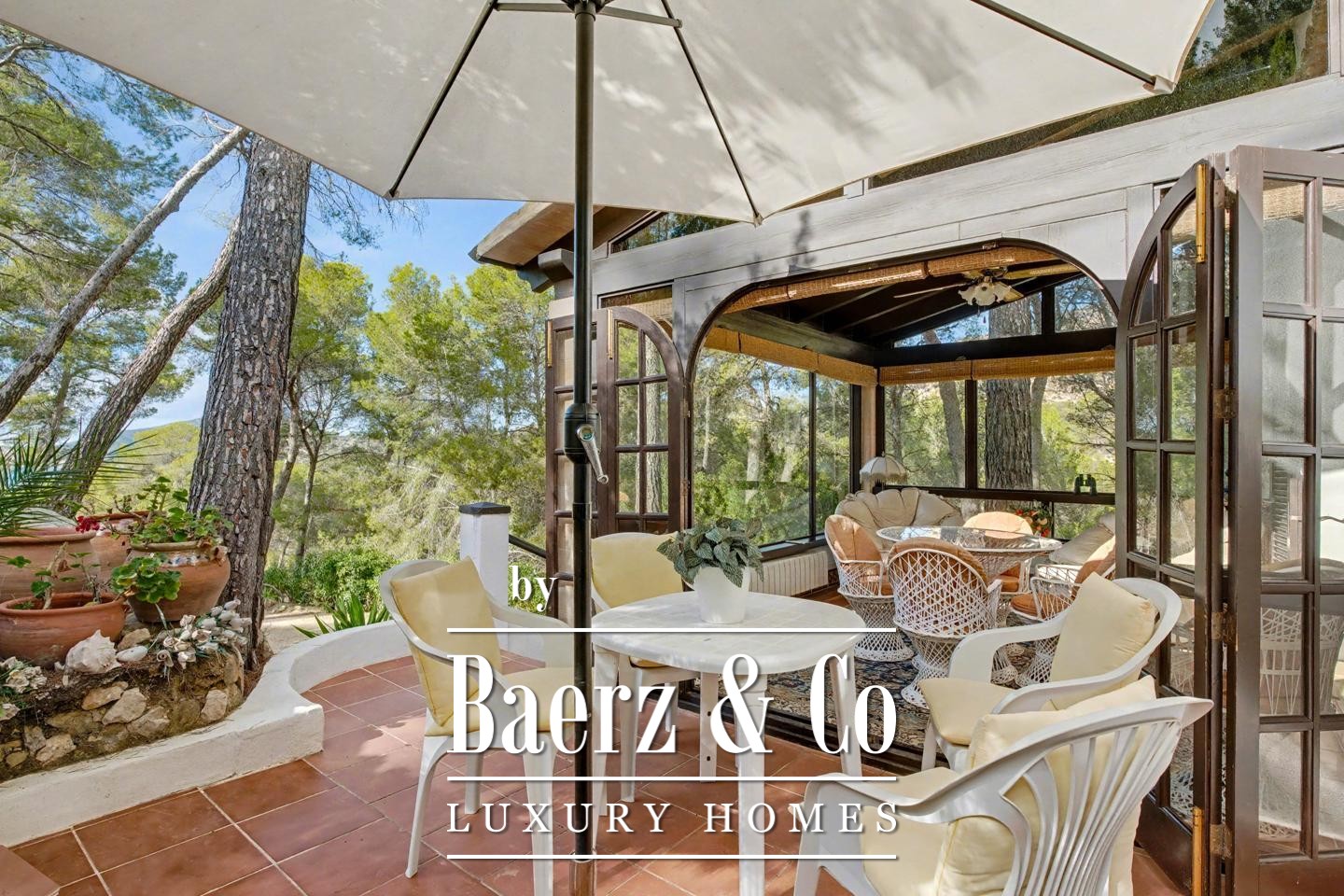 On a gentle hillside surrounded by Mediterranean woodland, this rustic finca, built in the 1980s and lovingly maintained by its owners, offers a sense of authenticity and serenity — a place where nature and the blue of the sea blend on the horizon.