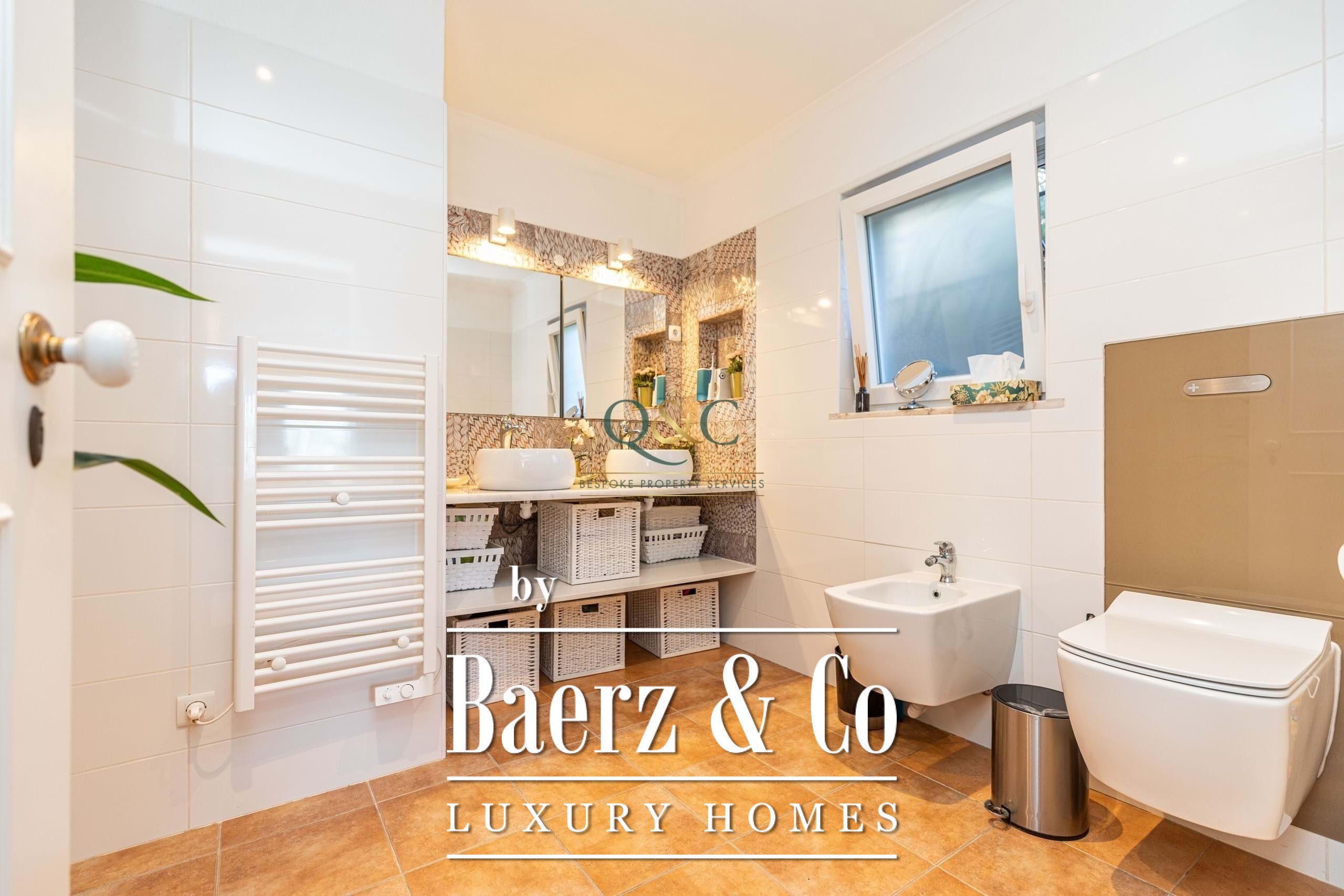 On the main level, the master suite is exceptionally spacious, featuring a newly refurbished bathroom and sliding doors opening directly onto the terrace. A sweeping staircase rises to the second double bedroom, also with a refurbished bathroom and private balcony, both enjoying the spectacular views.