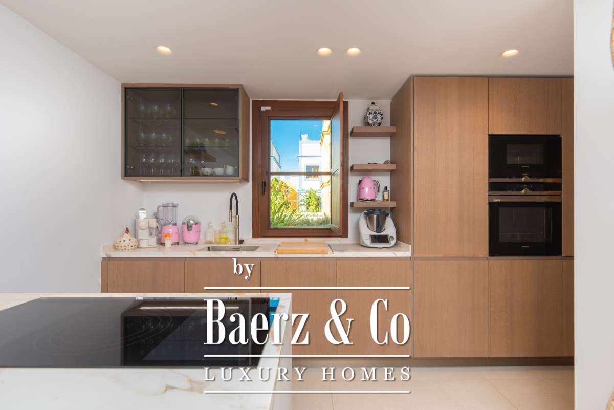 De omgevingWelkom in het charmante dorp Santa Gertrudis, één van de meest geliefde plekken van Ibiza. Dit idyllische dorp ligt midden op het eiland en straalt een perfecte balans uit tussen authentieke Ibicenco-sfeer en moderne elegantie. Gezellige pleinen, boetieks en stijlvolle restaurants liggen op loopafstand, terwijl u toch geniet van rust, privacy en een veilige woonomgeving. De townhouse ligt in het hart van deze bruisende gemeenschap, waardoor alles binnen handbereik is, van ochtendkoffie bij uw favoriete café tot een avondwandeling door de pittoreske straatjes van het dorp.Het townhouseDeze nieuwgebouwde townhouse combineert tijdloos design met hoogwaardig comfort. Met een totale oppervlakte van 248 m² biedt de woning een woonoppervlak van 199 m², verdeeld over twee stijlvolle verdiepingen en een schitterend dakterras. De drie ruime slaapkamers, waarvan twee met een eigen ensuite badkamer, zorgen voor optimaal wooncomfort en privacy.De lichte woonkamer vormt het kloppend hart van het huis, voorzien van een sfeervolle open haard en directe toegang tot de tuin. De volledig uitgeruste, zelfstandige keuken biedt alles wat u nodig heeft voor culinaire momenten met familie en