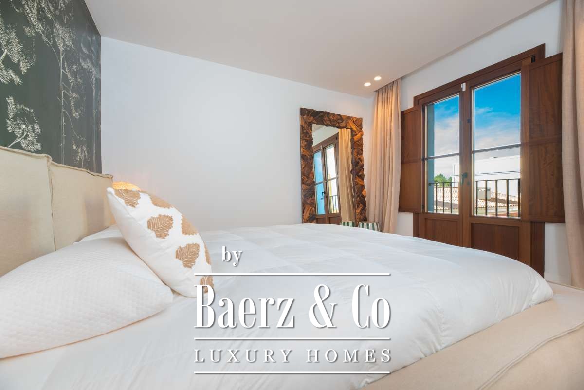 vrienden. Verder beschikt de woning over een privélift, vloerverwarming, individueel regelbare airconditioning in iedere kamer, een gastentoilet en een praktische lockerruimte voor extra opslag. De twee ondergrondse parkeerplaatsen maken het wooncomfort compleet. Alles is afgewerkt met premium materialen, van vloeren tot verlichting, waarmee deze woning uitblinkt in kwaliteit en stijl. De meubels zijn niet inbegrepen in de verkoopprijs, maar kunnen desgewenst optioneel worden overgenomen.De buitenruimtesDe buitenruimtes van deze townhouse zijn een waar verlengstuk van het binnenleven. Het dakterras is een absoluut pronkstuk, voorzien van een privézwembad en panoramisch uitzicht over het charmante dorp, de perfecte plek voor ontspanning of sfeervolle avonden onder de sterren. Daarnaast biedt het ruime terras volop mogelijkheden om te genieten van lange zomeravonden, omringd door de rust van de tuin.Met zijn moderne architectuur, duurzame installaties zoals een warmtepomp, en de unieke combinatie van privacy, comfort en ligging, is deze townhouse een zeldzaam pareltje in het hart van Santa Gertrudis. Een plek waar modern wonen en het authentieke eilandgevoel naadloos samenkomen.
