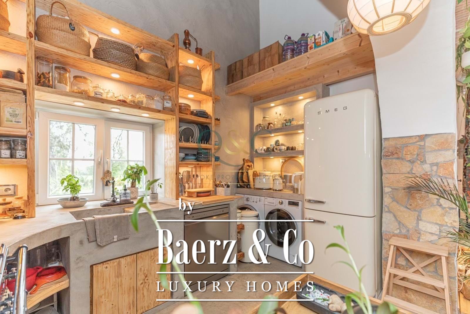 Offered for sale at a very competitive price for what is on offer and nestled in the serene Algarve countryside, just a short drive from the vibrant town of São Brás de Alportel, this charming Portuguese stone house, built in 1940, has been completely renovated using natural materials. The house was plastered with high-quality lime and has an energy efficiency rating of A. Set within an extensive, fully fenced flat plot, the property is a true sanctuary, complete with a newly planted orchard of fruit trees, kitchen garden with raised bed and nature pond that seamlessly blends with the landscape. The water supply is provided by a large cisterna and is equipped with water filters and the garden is equipped with an extensive irrigation system.
