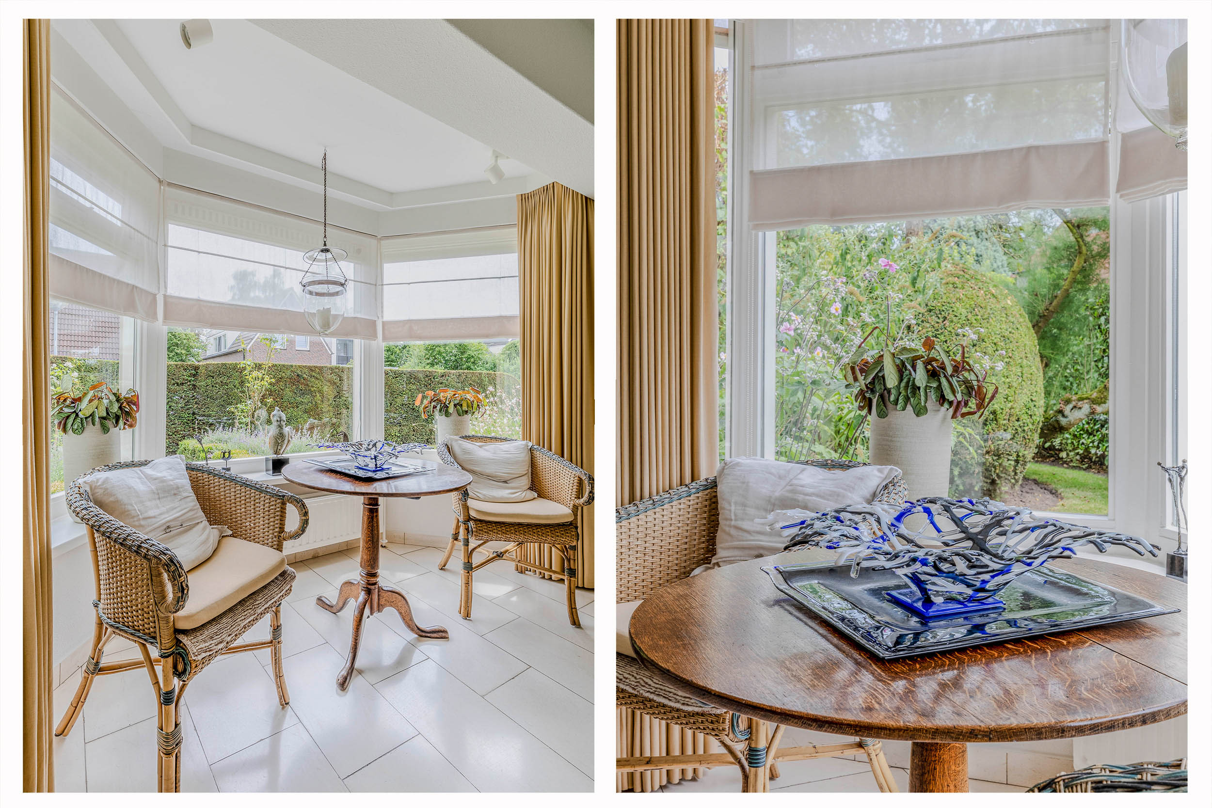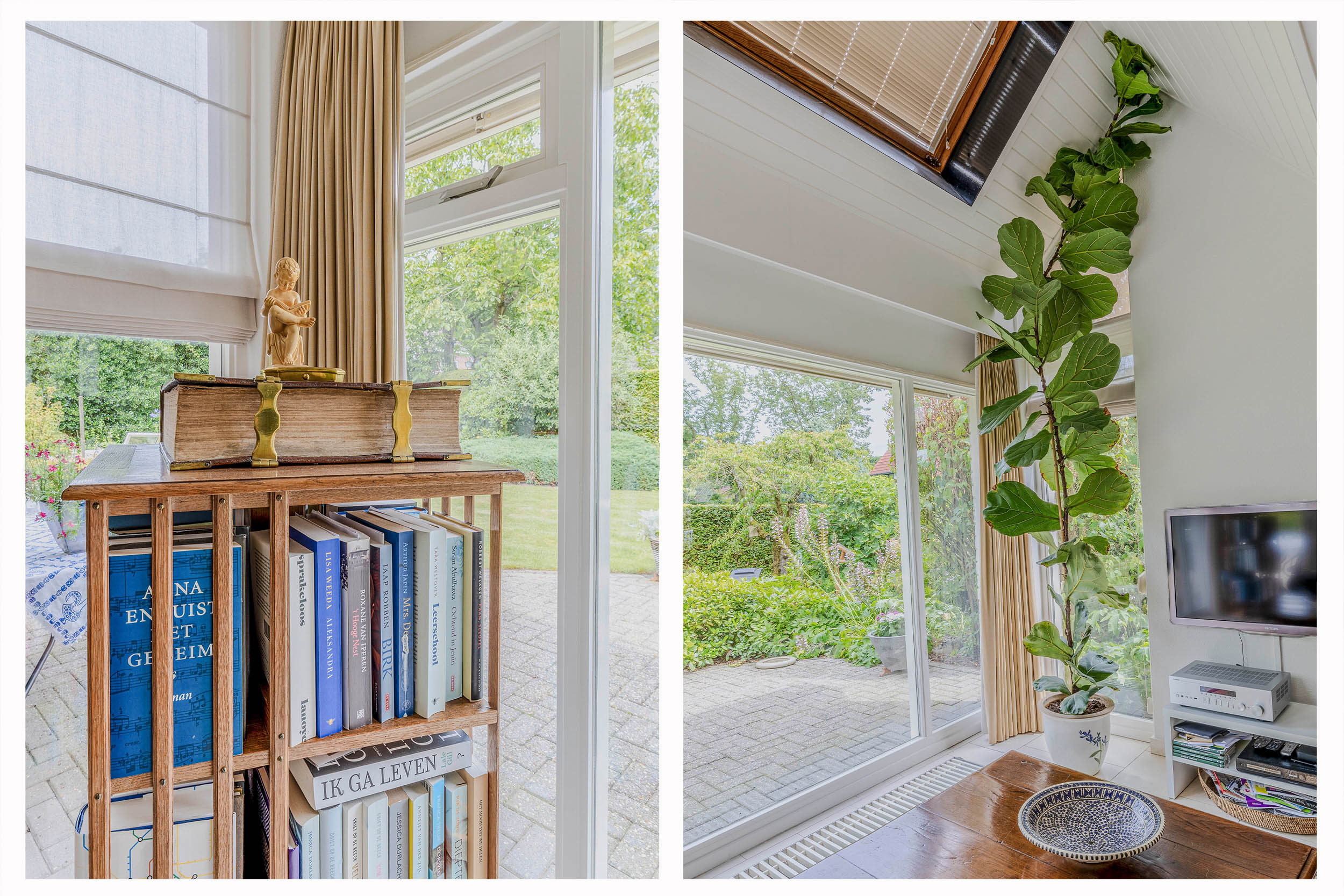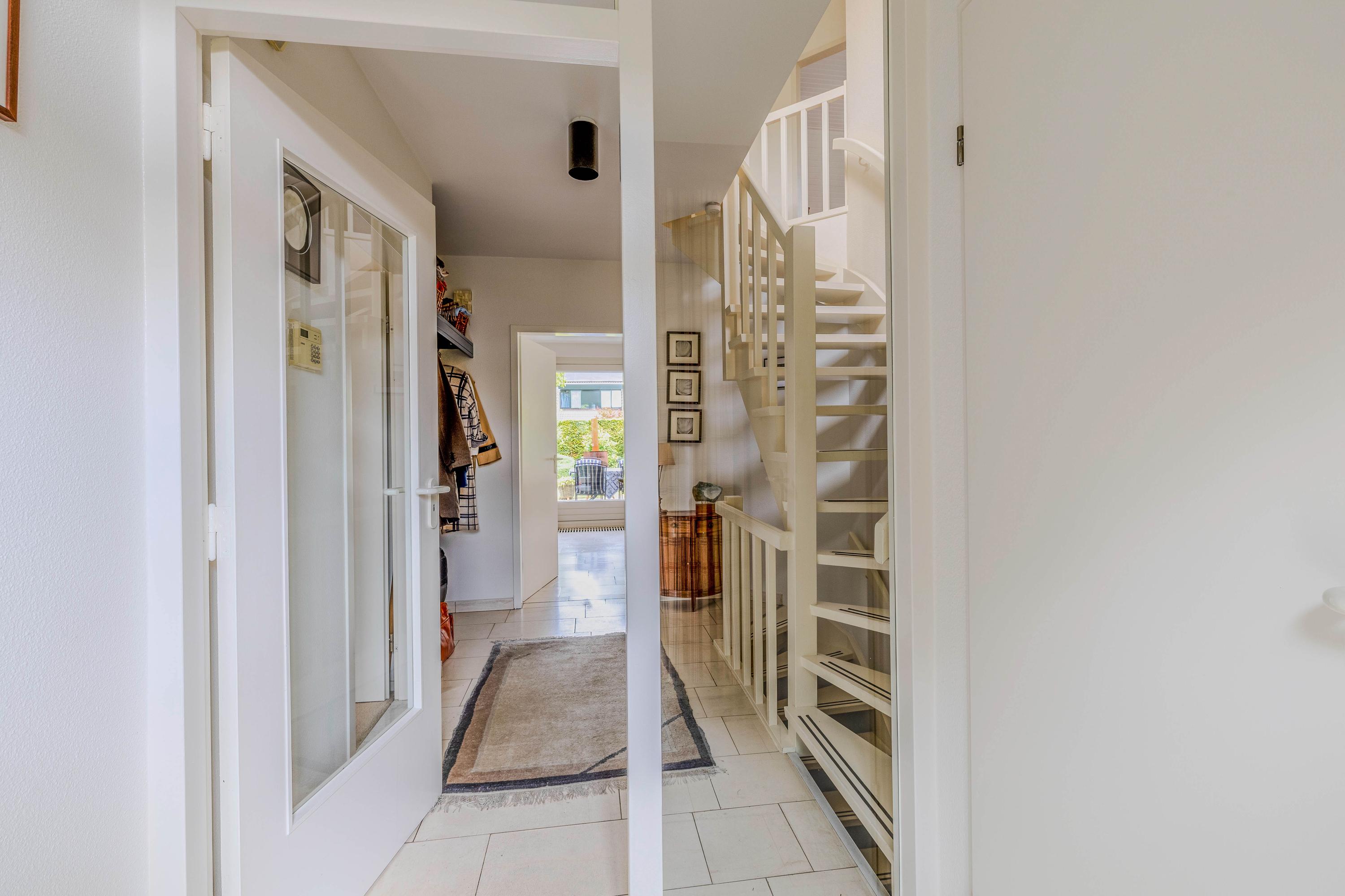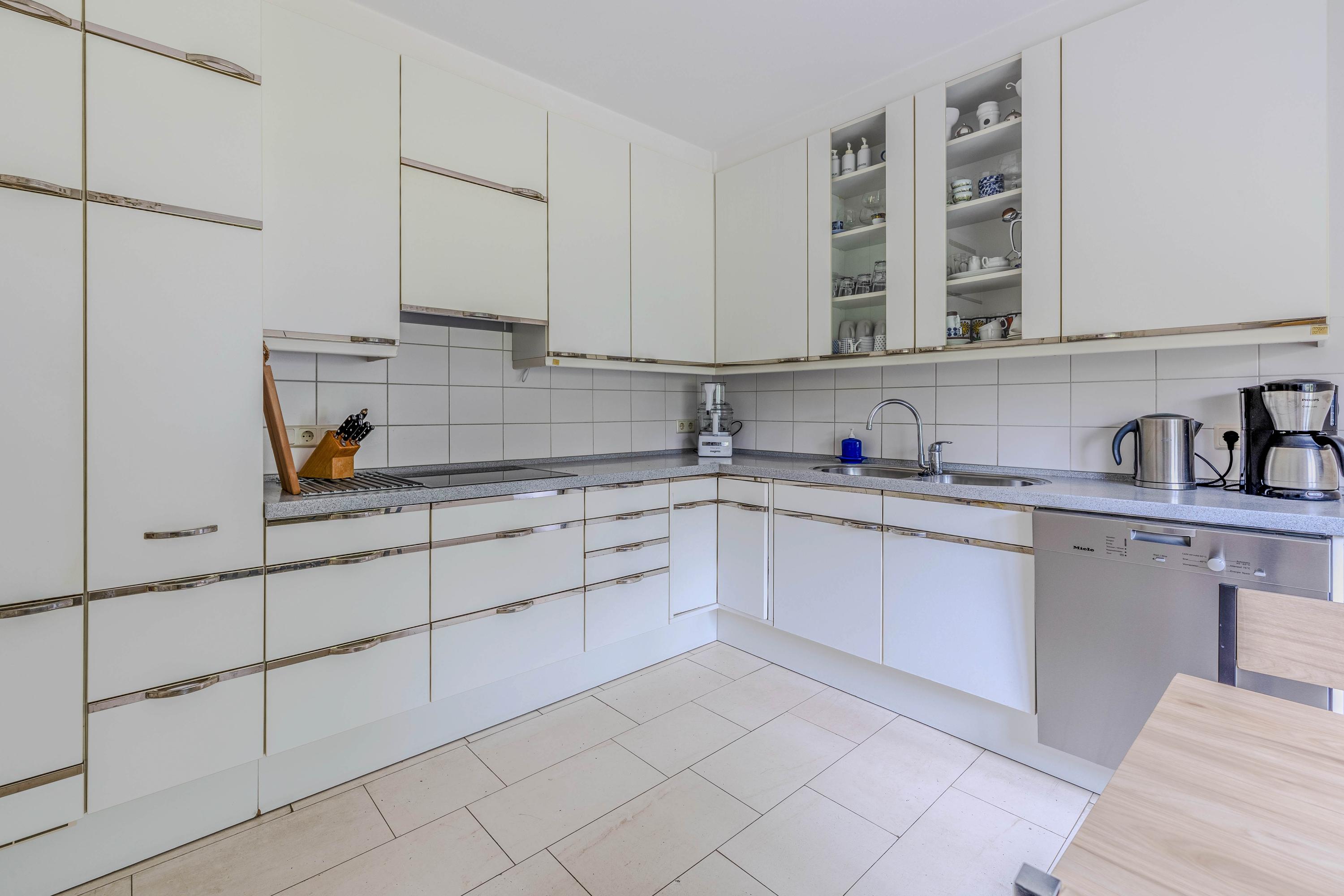 Vanuit de woonkamer loopt u via een schuifpui naar het royale- en deels overdekte terras en tuin. De ramen zijn voorzien van automatische zonwering.