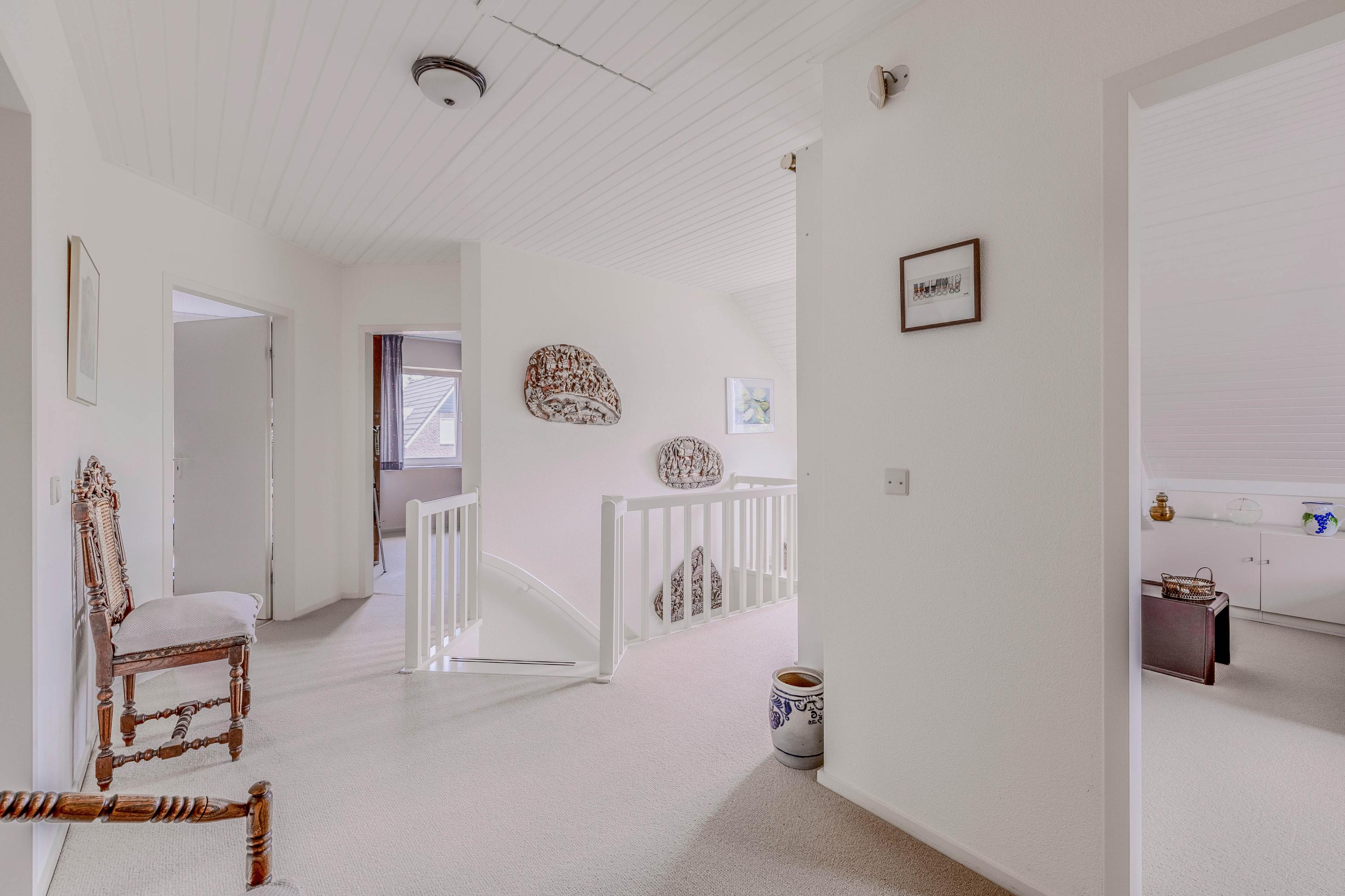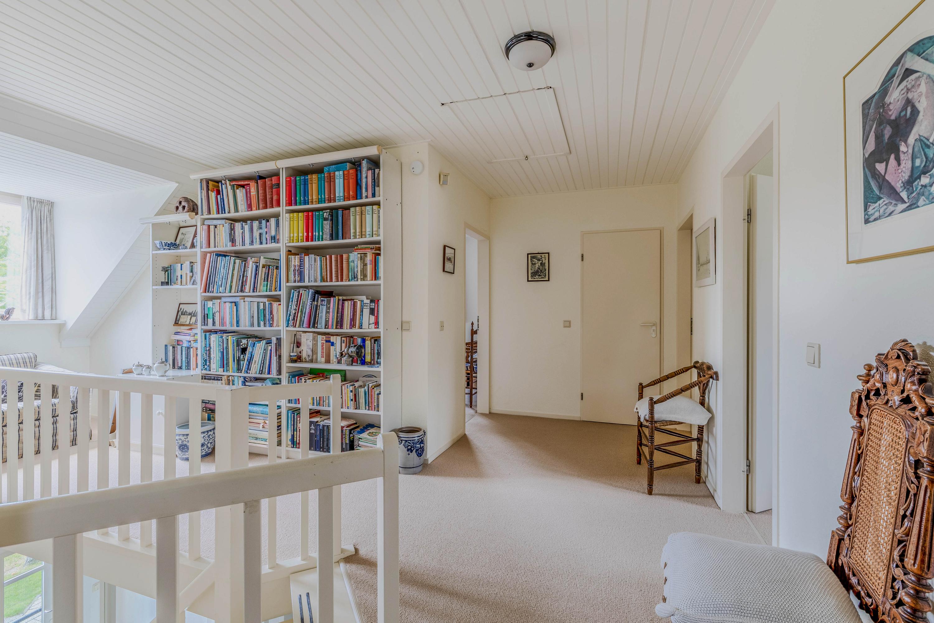 De royale overloop biedt toegang tot 5 ruime slaapkamers (ca. 10m², 15m², 16m², 16m² en 17m²) en een tweede badkamer (ca. 4m²).