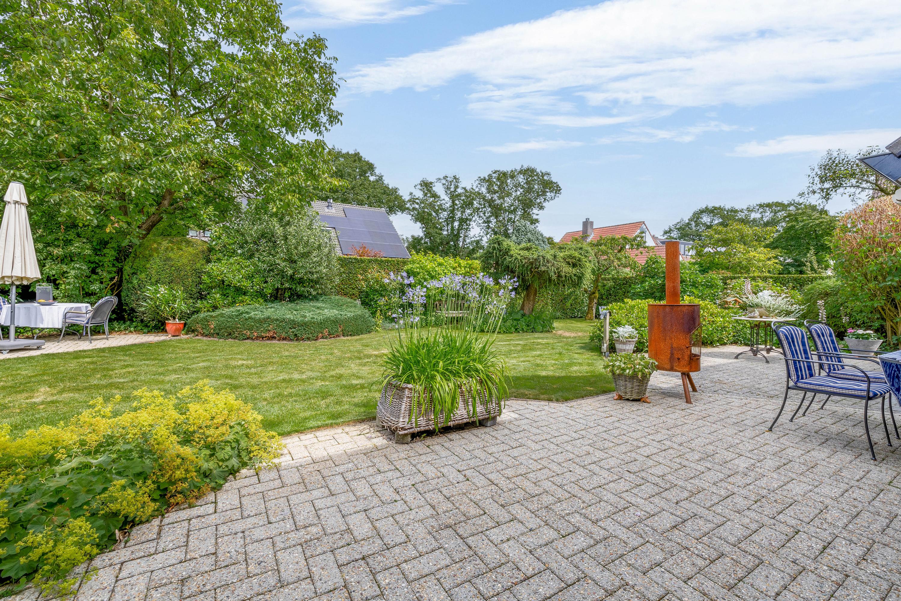 De woning heeft een prachtig aangelegde achtertuin met zeer veel groen en privacy. U geniet hier onder andere van gazon, borders met beplanting en enkele bomen. Er zijn diverse zitplekken aanwezig om heerlijk rustig te kunnen vertoeven.