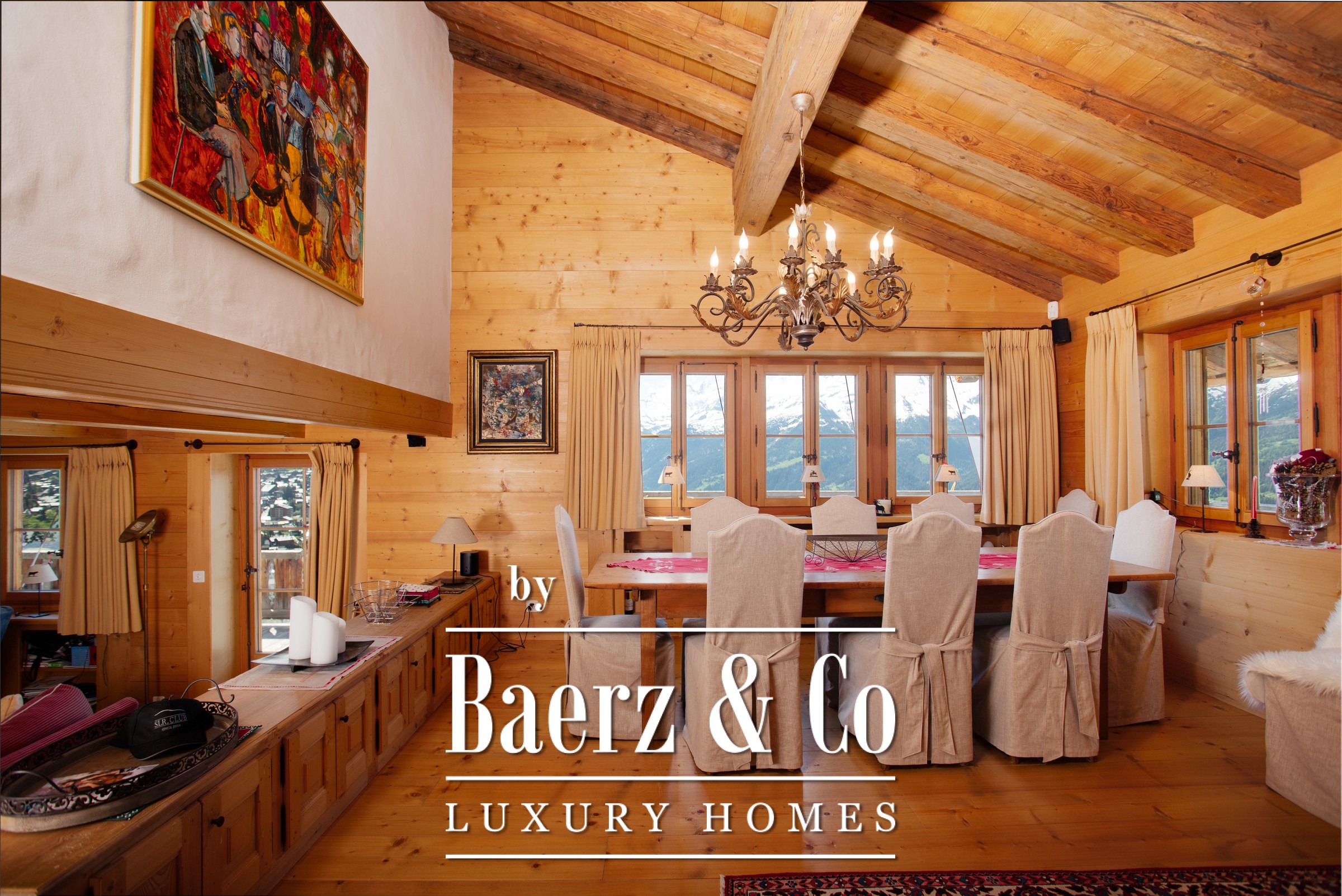 a breathtaking view of the valley and enjoy a sublime fireplace. On the same floor you can enjoy the open kitchen and dining room under the roof. In the attic is the master bedroom with its bathroom and dressing room. On the first floor there are two other bedrooms with bathrooms. Let's move on to the mazot. It consists of a living room, dining room and two further bedrooms and a bathroom.